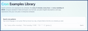Instead of wrestling with syntax, you can use the Cron Library to easily create new cron expressions or decipher how existing jobs are configured to run.