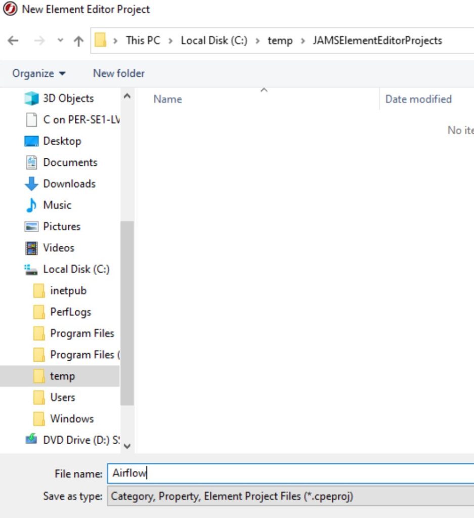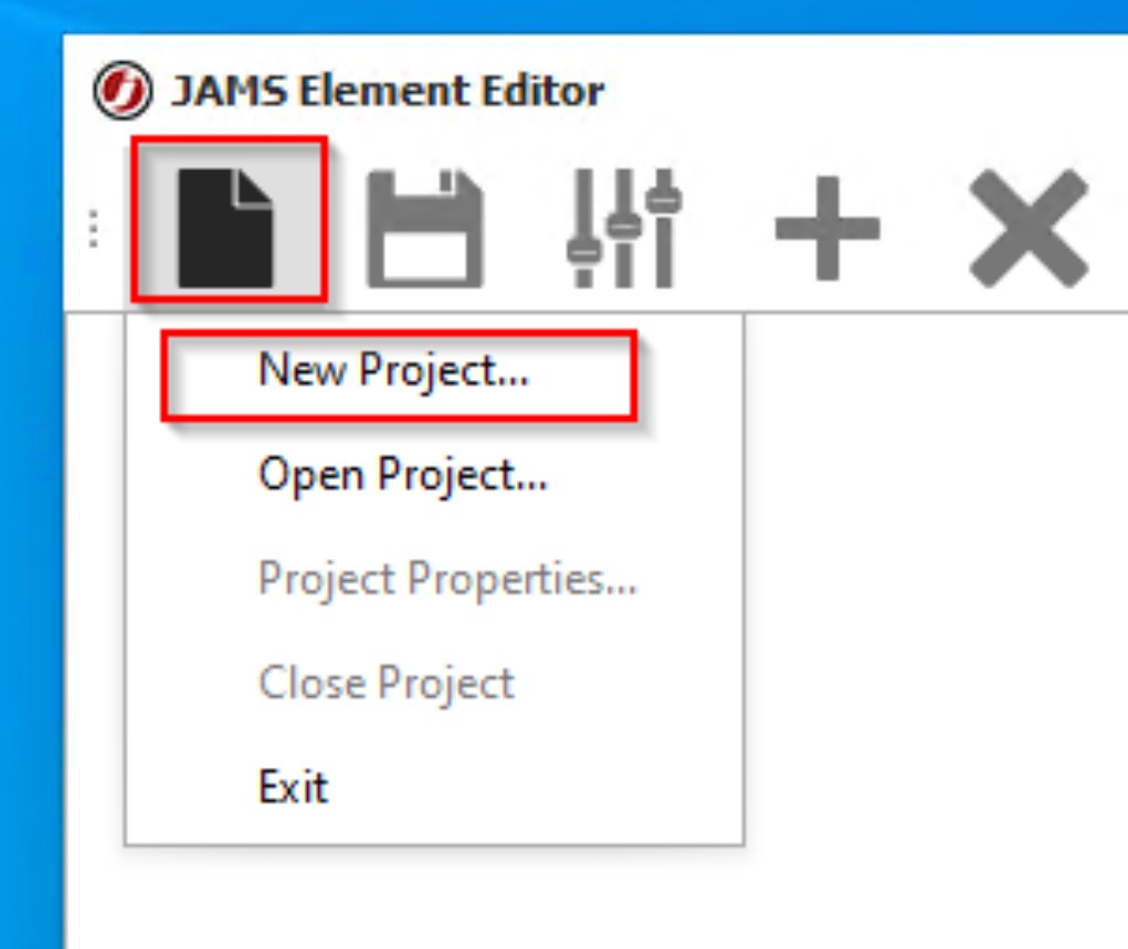 The first thing we need to do is create a project that we can manage through the JAMSElementEditor.
